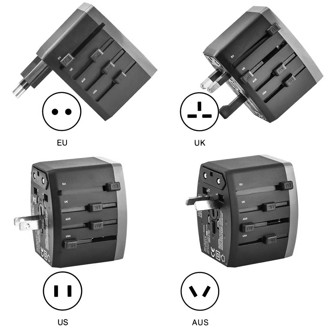 - Portable and Safety: Compact and lightweight design to fit into luggage and briefcases; It has no surge protection, no cords, can be taken aboard cruise ship. The worldwide adapter with double fuse (fuse standard: 240V 10A), integrated security shutters, guard your travel security.